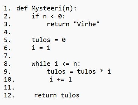 - Funktion nimi on Mysteeri, ja se saa parametriksi muuttujan n.
