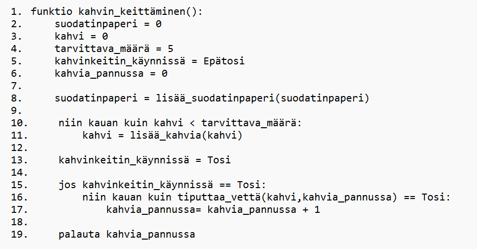 Koodin vasemmalla puolella olevat numerot kuvastavat rivejä.
