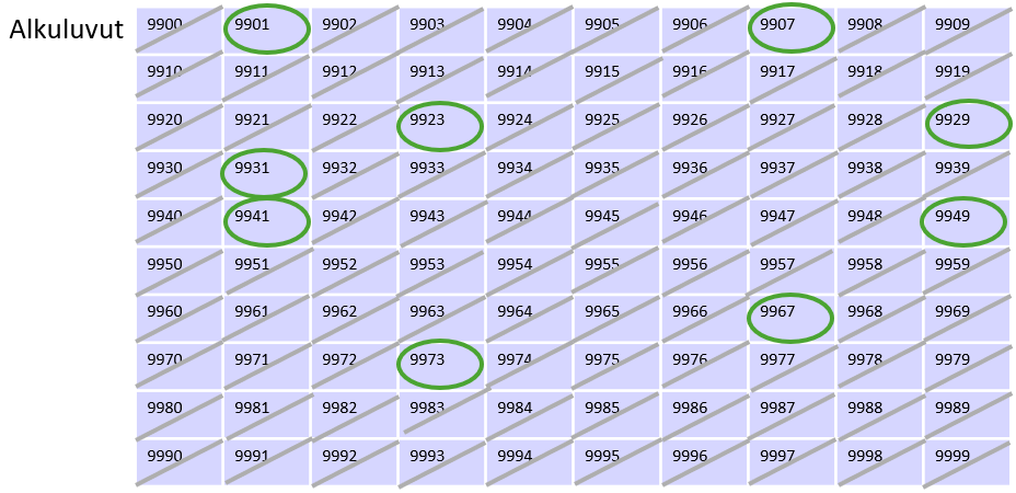 Tehtävä 8. Selvitä suurin nelinumeroinen alkuluku.