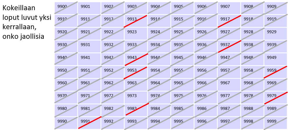 , , , , 9973 ei ole jaollinen kuin itsellään ja 1.