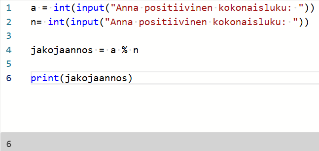 jakojaannos = a % n