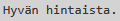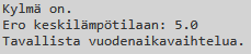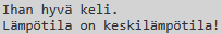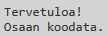 f) Tuloste on nyt siisti ja ihmiselle tulkittavissa, mutta sitä voisi saada helppolukuisemmaksi lisäämällä tulosteeseen ’mutta’ ja sitten loppuosa seuraavan esimerkin mukaisesti: