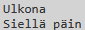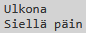 TÄSSÄ TULEE TULOSTEEKSI MAX 2 RIVIÄ.