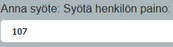 d) Proteiinin päivittäinen saanti mitataan usein grammoina painokiloa kohden. Lisää ohjelmaan toiminnallisuus, jonka avulla voidaan laskea, paljonko Arnold Schwarzeneggerin päivittäin tarvitsema proteiini vähintään maksoi, kun hän huippukunnossa pysyäkseen tarvitsi n. 2 grammaa painokiloa kohden. Arska painoi kisatessaan n. 107 kiloa. Proteiini maksoi silloin halvimmillaan n. 2,5 senttiä grammalta (tämä tieto ei ole tarkistettu). Ohjelman tulee ottaa syötteenä henkilön nimi ja paino ja tulostaa liukuluku yksiköineen seuraavan esimerkkitulosteen mukaisesti:
