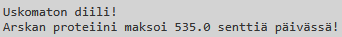 Arskan proteiini maksoi 605.5 senttiä päivässä!
