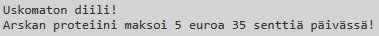 Arskan proteiini maksoi 6 euroa ja 6 senttiä päivässä!