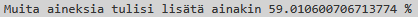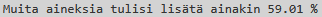Muita aineksia tulisi lisätä ainakin 59,0106007067 %.
