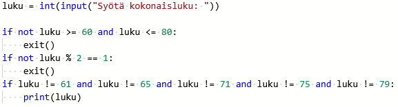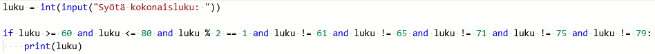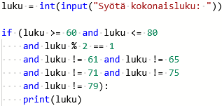 if luku != 61 and luku != 65 and luku != 71 and luku != 75 and luku != 79: