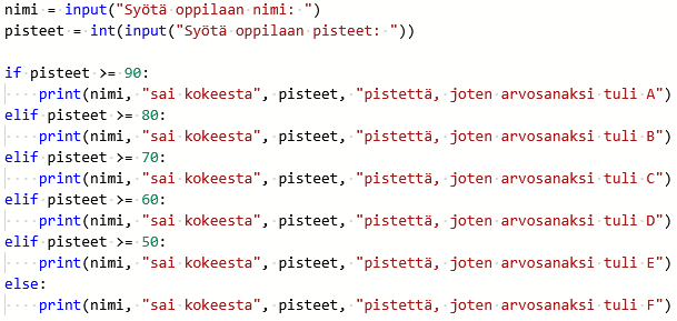 print(nimi, "sai kokeesta", pisteet, "pistettä, joten arvosanaksi tuli A")