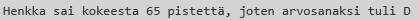 Henkka sai kokeesta 65 pistettä, joten arvosanaksi tuli D