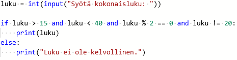 elif luku > 15 and luku < 45 and luku % 2 == 0: