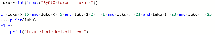 if luku > 15 and luku < 45 and luku % 2 == 1 and luku != 21 and luku != 23 and luku != 25: