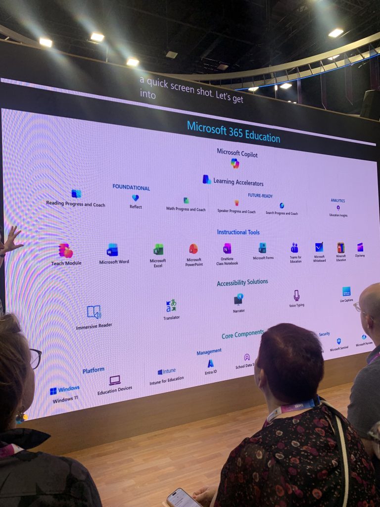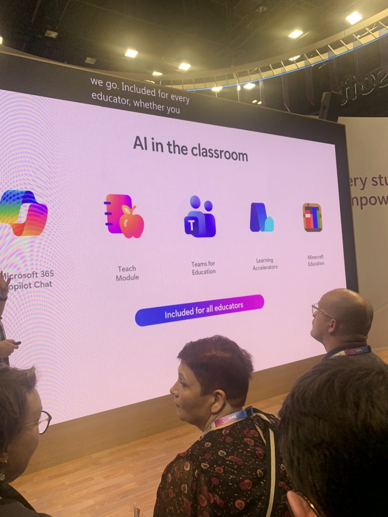 Työskentelen pääasiassa perusopetuksen parissa, ja lisäksi kotikunnassani perusopetuksen oppilaat toimivat Microsoftin ekosysteemissä. Tämä rajaa luonnollisesti myös niitä ratkaisuja, jotka ovat aidosti käyttökelpoisia arjessa. Tämän vuoksi keskityin messuilla erityisesti Microsoftin tarjoamiin työkaluihin ja vietin runsaasti aikaa heidän osastollaan.