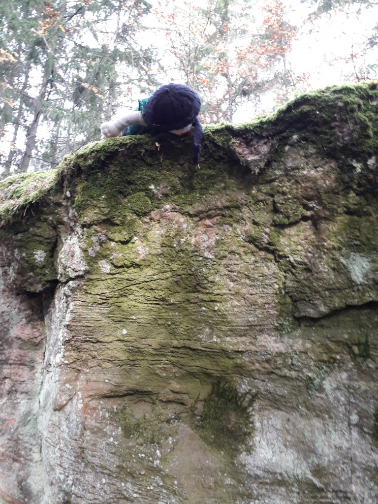 Höpsö-kissa kiipeilee kalliolla