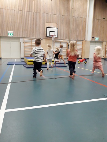 Juoksua salissa.