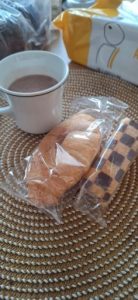 Aamupalaksi vähän leivonnaista ja suklaamaitoa.