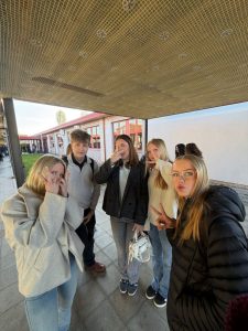 Lähdettiin bussilla klo 7 kohti koulua. Saavuttiin koululle 7.30 aikoihin ja hengailtiin hetki parini kavereiden kanssa.