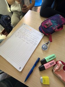 Ensimmäinen tunti oli historiaa ja työskenneltiin pareissa.