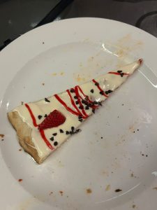 Tämän jälkeen menimme Martinan kanssa takaisin kotiin ja valmistautumaan yhteistä iltaa ja pizzeriaa varten. Kun olimme valmiit lähdimme kävelemään Alisan, Idan, Mintun ja Joonan ja heidän pariensa kanssa yhdessä pizzeriaan. Siellä söimme kaikenlaisia eri pizzoja suolaisia ja makeisia.