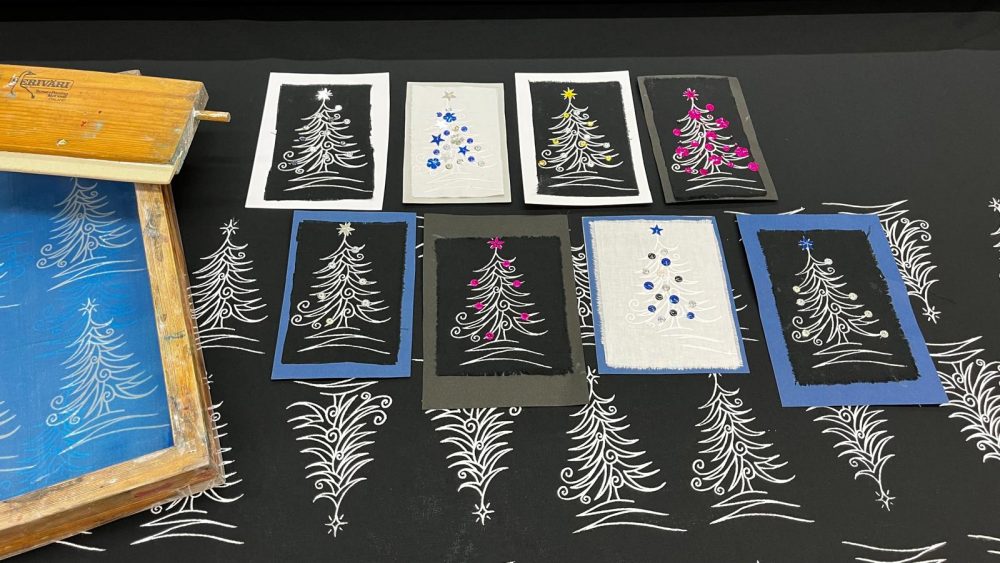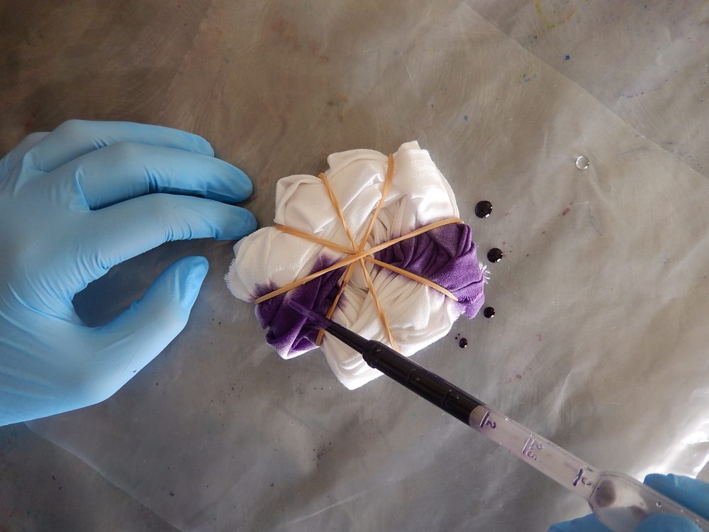 Tekniikkoina aurinko- ja spiraalivärjäys, sabluunapainanta, vapaa konekirjonta ja brodeeraus, sekä päällikeompelu oppilaan valinnan mukaan.