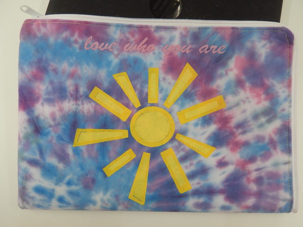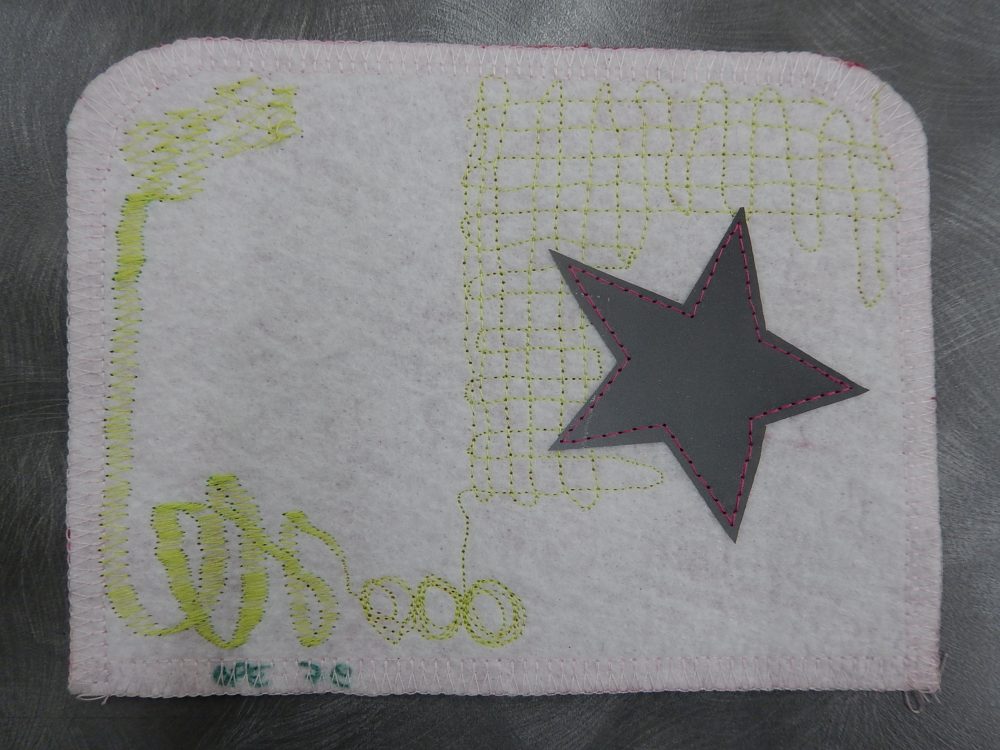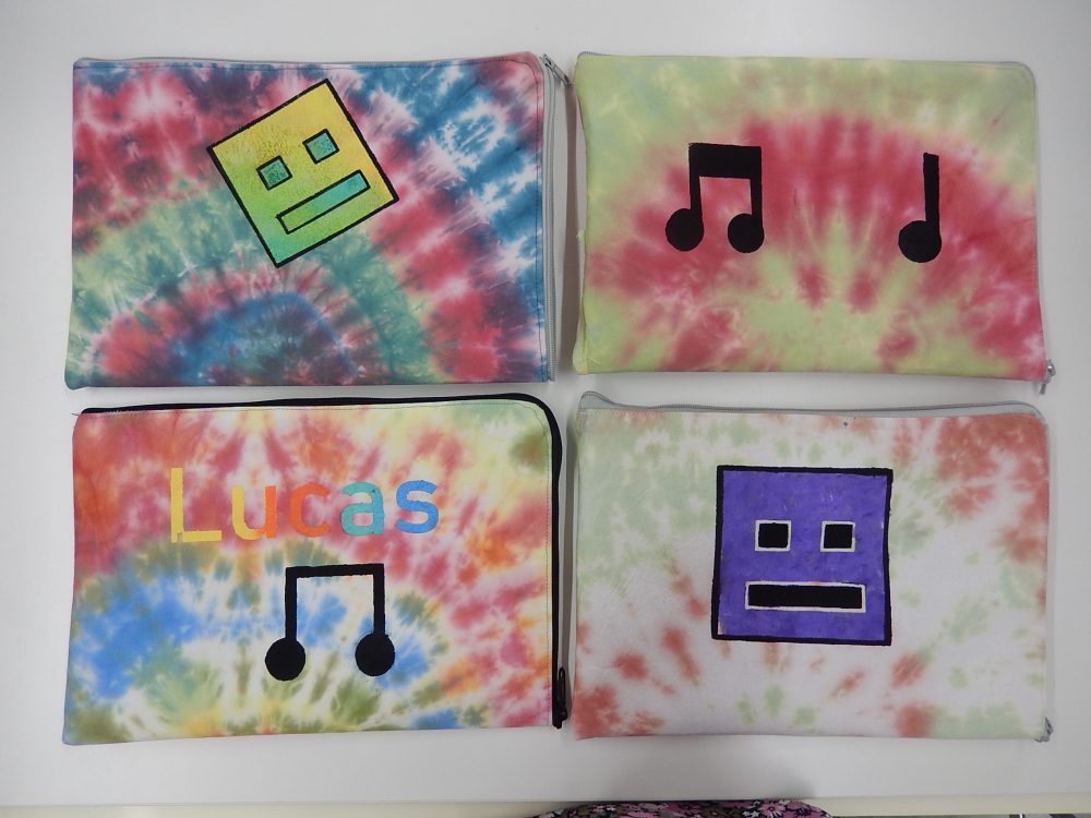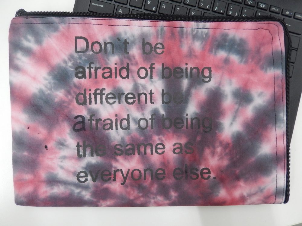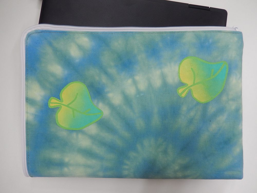 Harjoittelun ohessa työstettiin omaa läppärisuojaa, joka aloitettiin kankaan värjäämisellä tai maalamisella. Sabluunapainannalla tai konekirjoen kuvioitiin ja ohessa opittiin miten vetoketju kiinnitetään, sekä sauma ja tikkaus ommellaan.