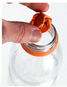 - Skrynkla ihop pappersbiten på fyra gånger fyra tum till en tät boll. Bollen ska lätt passera genom flaskans öppning.