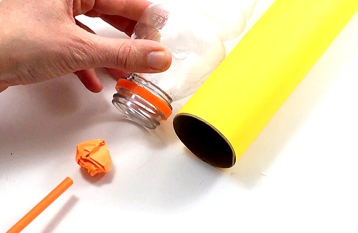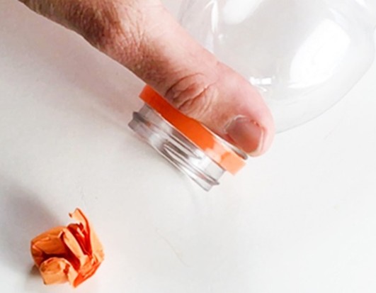 - Placera pappersbollen framför flaskans mynning, cirka 5 centimeter från flaskan.