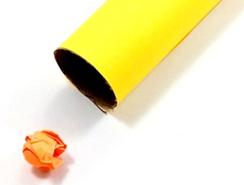 - Lägg pappröret med en öppning mot dig. Placera pappersbollen cirka 5 cm framför rörets öppning.
