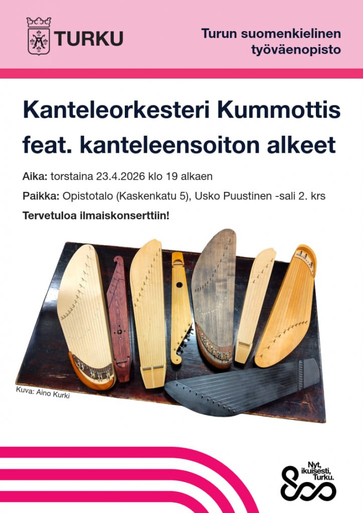 - Konsertti: Kanteleorkesteri Kummottis feat. kanteleensoiton alkeet, to 23.4. klo 19 alkaen