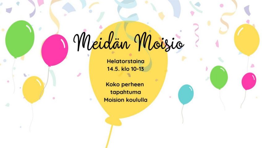 Tervetuloa Meidän Moisio -tapahtumaan helatorstaina 14.5. klo 10-13 Moision koululle! Ohjelmassa monenlaista puuhaa koko perheelle, mm. lasten juoksukisat, ongintaa, maksutonta …