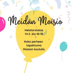 Tervetuloa Meidän Moisio -tapahtumaan helatorstaina 14.5. klo 10-13 Moision koululle! Ohjelmassa monenlaista puuhaa koko perheelle, mm. lasten juoksukisat, ongintaa, maksutonta poniajelua, kilin vierailu, telttadisco, kepparirata, ulkokirppis, herkkuja 4. luokkien buffetissa…